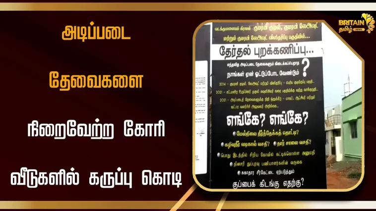 அடிப்படை தேவைகளை நிறைவேற்ற கோரி வீடுகளில் கருப்பு கொடி