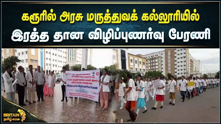 கரூர் மாவட்டத்தில் உலக குருதி கொடையாளர் தினத்தை முன்னிட்டு இரத்த தான விழிப்புணர்வு பேரணி நடைபெற்றது.