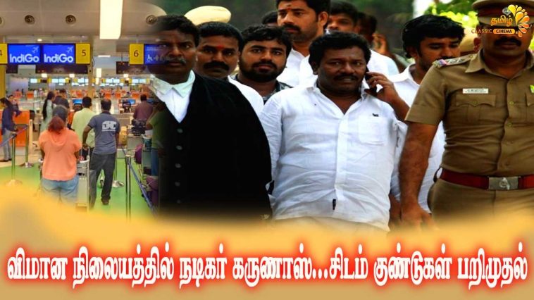 சென்னை விமானத்தில் நடிகர் கருணாஸ் நேற்று விமானப்படை அதிகாரிகளால் கைதிசெய்யப்பட்டார்.