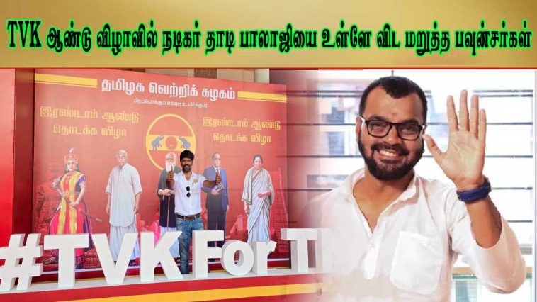 தமிழக வெற்றி கழகத்தின் ஆண்டு விழாவில் நடிகர் தாடி பாலாஜியை உள்ளே விட மறுத்த பவுன்சர்கள்