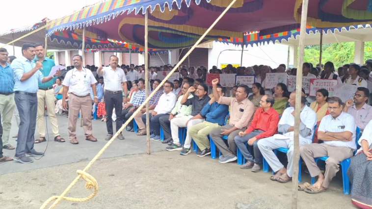 மருத்துவர் தாக்கப்பட்டதைக் கண்டித்து மருத்துவர் மாணவ மாணவிகள் புறக்கணித்தும் போராட்டம்