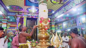 தொடர்ந்து கொடிமரத்திற்கு சிறப்பு பூஜைகள் செய்யப்பட்டு திரிசூலம் பொறிக்கப்பட்ட கொடிபட்டதை தாங்கி துவஜாரோஹனம் என்னும் கொடியேற்றம் வெகு சிறப்பாக நடைபெற்றது.