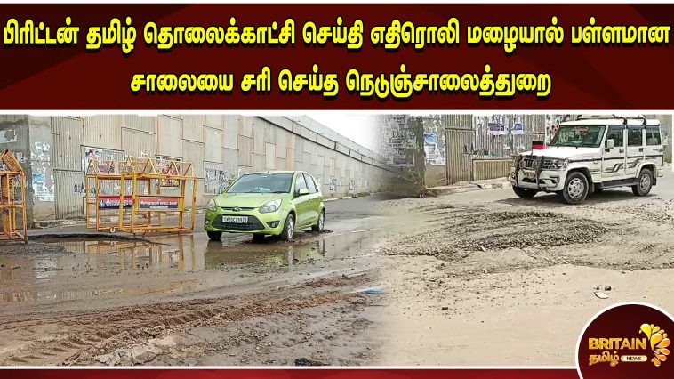 பிரிட்டன் தமிழ் தொலைக்காட்சி செய்தி எதிரொலி மழையால் பள்ளமான சாலையை சரி செய்த நெடுஞ்சாலைத்துறை