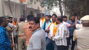 அப்போது ராகுல்காந்தி கொடும்பாவியை எரித்தனர் இந்த சம்பவத்தின்போது காங்கிரஸ் கட்சி அலுவலகத்தில் நிர்வாகிகள் இருந்தனர். ஆனால் போலீசார் யாரும் இல்லை. இதனால் பாஜக இளைஞரணியினர் ஆர்ப்பாட்டம் செய்து கலைந்து சென்றனர்.