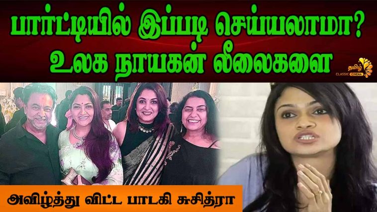 பாடகி சுசித்ரா தற்பொழுது உலகநாயகன் கொடுத்த பார்ட்டி பற்றி பகிரங்கமாக கூறி அதிர்ச்சியை வெளிட்டிருகிறார்.