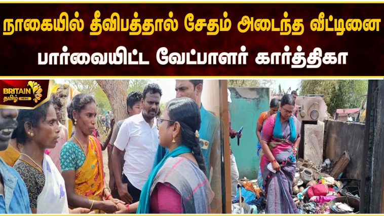 நாகையில் தீவிபத்தால் சேதம் அடைந்த வீட்டினை பார்வையிட்ட வேட்பாளர் கார்த்திகா