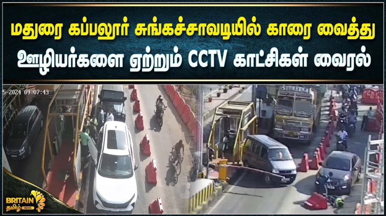 மதுரை கப்பலூர் சுங்கச்சாவடியில் காரை வைத்து ஊழியர்களை ஏற்றும் CCTV வீடியோ காட்சிகள் வைரல்