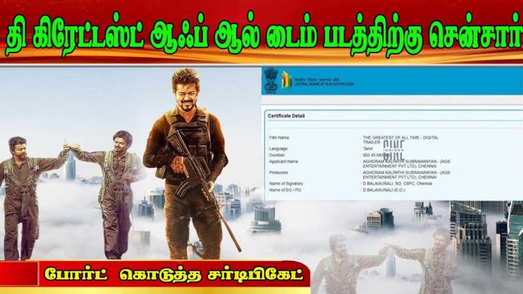 தி கிரேட்டஸ்ட் ஆஃப் ஆல் டைம் படத்திற்கு சென்சார் போர்ட் கொடுத்த சர்டிபிகேட்