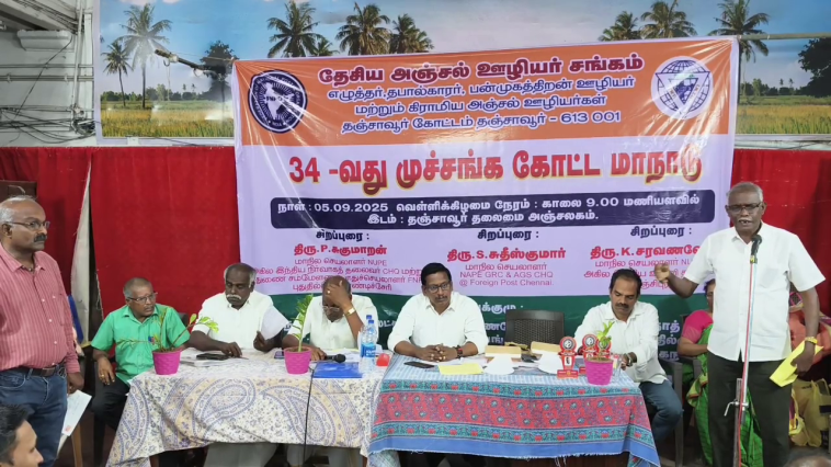தேசிய அஞ்சல் ஊழியர் சங்கம், எழுத்தர், தபால்காரர், ஊழியர் மற்றும் கிராமிய அஞ்சல் ஊழியர்கள், தஞ்சாவூர் கோட்டம் சார்பில் 34வது கோட்ட மாநாடு தஞ்சாவூர் தலைமை தபால் நிலையத்தில் நடைபெற்றது.