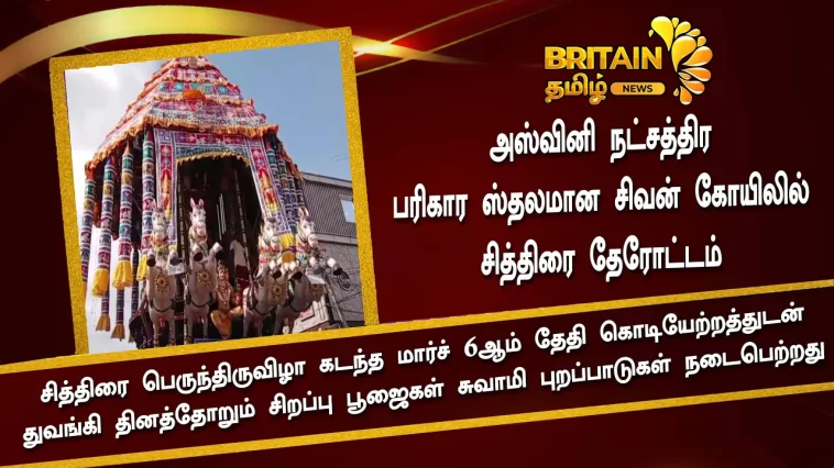 அஸ்வினி நட்சத்திர பரிகார ஸ்தலமான சிவன் கோயிலில் சித்திரை தேரோட்டம்