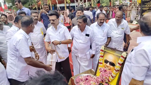 மயிலாடுதுறை மாவட்டத்தில் இரண்டு நாள் சுற்றுப்பயணமாக தமிழக முதலமைச்சர் மு க ஸ்டாலின் வருகை புரிந்துள்ளார். நேற்று ரோடு ஷோ நடத்திய முதலமைச்சர் மயிலாடுதுறை நகர அலுவலகத்தில் முன்னாள் மு.கருணாநிதியின் முழு உருவ வெங்கல சிலையை திறந்து வைத்தார்.