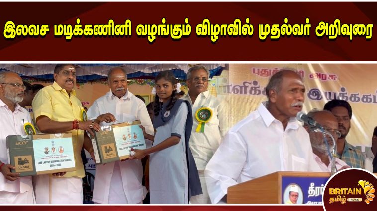 தொடர்ந்து மாணவர்களுக்கு இலவச மடிக்கணினிகளை வழங்கி சிறப்புரையாற்றிய ரங்கசாமி, ஏழை எளிய மாணவர்கள் நன்றாக படிக்க அரசு அனைத்து உதவிகளையும் செய்து கொண்டிருக்கிறது.