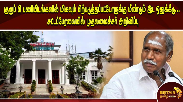 குரூப் பி பணியிடங்களில் மிகவும் பிற்படுத்தப்பட்டோருக்கு மீண்டும் இட ஒதுக்கீடு… சட்டப்பேரவையில் முதலமைச்சர் அறிவிப்பு…
