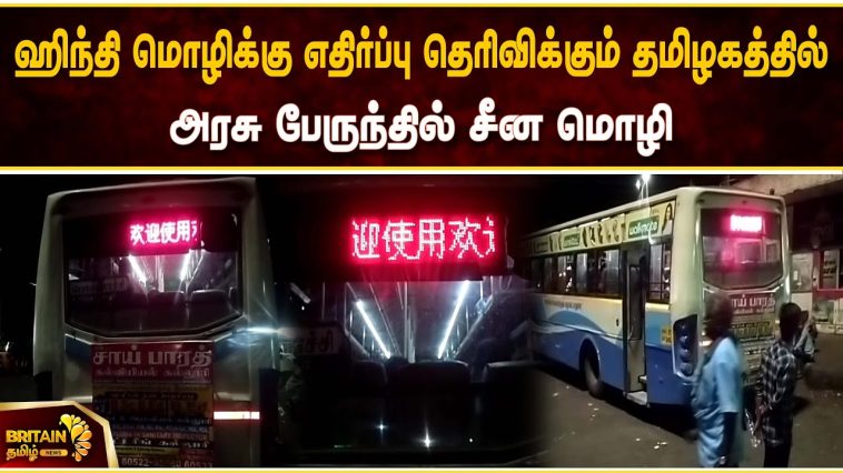 ஹிந்தி மொழிக்கு எதிர்ப்பு தெரிவிக்கும் தமிழகத்தில் அரசு பேருந்தில் சீன மொழி இடம் பெற்றதால் பயணிகள் மற்றும் பொதுமக்கள் அதிர்ச்சி.