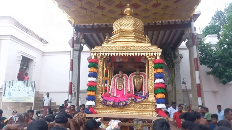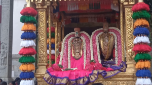 ஜீயா் சுவாமிகளுக்கு மாியாதை செய்யப்பட்டதும் வீதி உலா வந்த தங்கச் சபரத்தில் உள்ள பெருமாள் தாயாருக்கு பொதுமக்கள் மாலை அணிவித்தும் தேங்காய் பழம் படைத்தும் வழிபட்டனர்.