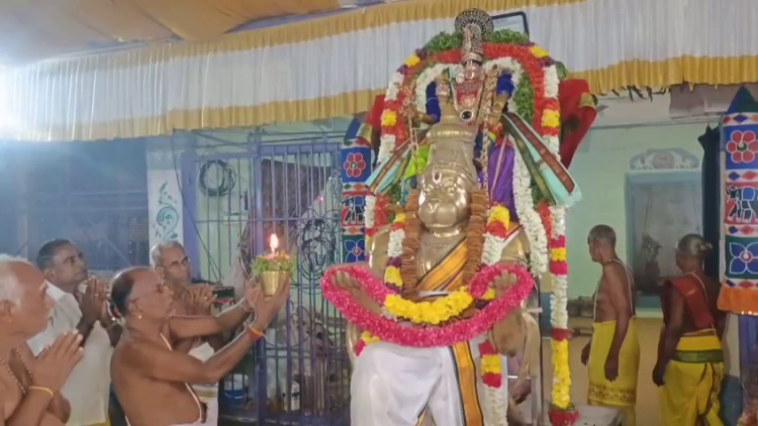 பல்வோறு ஆராத்திகள் காண்பிக்கப்பட்டு பிறகு மங்கள இசையோடு கிரிவலம் வந்து பக்தர்களுக்கு காட்சி தந்தார் பின் பள்ளியரை பூஜை நடைபெற்றது இதில் ஏராளாமானவர்கள் கலந்து கொண்டனர், 7-ம் தேதி ஸ்ரீ கருட வாகனத்திலும் 8-ந்தேதி 5 – மணிக்கு .மேல் 8 மணிக்கும் திருக்கல்யாண வைபவம், 9-ம் தேதி குதிரை வாகனத்திலும் 10 -ந்தேதி அதிகாலை 6 மணிக்கு ரதம் ஏறும் நிகழ்வும் தேர் நிலை பெயர்த்தல் நிகழ்வு மாலை 3 -4 5- மணிக்கு தேர் வடம்பிடித்து இழுத்தல் திருவீதி உலாவும், 11ந் தேதி சத்தாபரணம், வாண வேடிக்கை12. ந்தேதி மஞ்சள் நீராட்டுடன் நிறைவுபெறுகின்றன தினமும் அனைத்து பக்தர்களுக்கும் அன்னதானம் மிக சிறப்புடன் வழங்கபடுகின்றன. ,