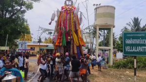 இதில் ஊர் கிராம மக்கள் திருத்தேரை தோளில் சுமந்த வாரு தூக்கிச் சென்றனர் விழாவிற்கான ஏற்பாடுகளை கோவில் நிர்வாகம் மிக சிறப்பாக செய்திருந்தனர்.