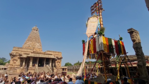 உலகப் புகழ்பெற்ற தஞ்சை பெரிய கோவிலில் சித்திரை திருவிழா கொடியேற்றத்துடன் தொடங்கியது. 18 நாட்கள் நடைபெறும் இந்த விழாவின் முக்கிய நிகழ்வான தேரோட்டம் மே 7 ஆம் தேதி நடைபெறுகிறது.