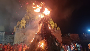 தஞ்சை பெரிய கோவிலில் சொக்கப்பனை ஏற்றப்பட்டது