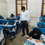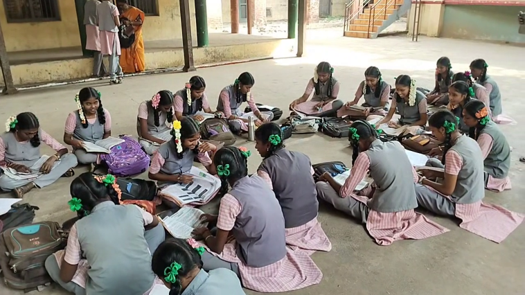 இங்கு ஆயுதம் ஏந்திய காவல்துறையினர் பாதுகாப்பு பணியில் ஈடுபட்டுள்ளனர். இன்று நடைபெற்ற பொது தேர்வில் மாணவ மாணவிகள் ஆர்வத்துடன் பங்கேற்று உள்ளனர்.
