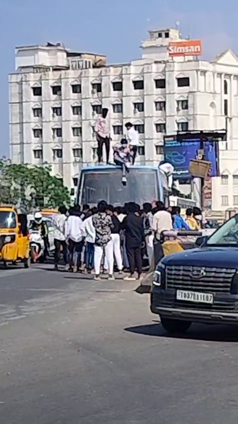 மேலும், அவர்கள் அட்டூழியத்தால் பேருந்தை இயக்க முடியாமல் ஓட்டுநர் பரிதவித்துள்ளார். சாலை செல்லும் சாகன வாகன ஓட்டிகளும் அச்சத்துடன் கடந்து செல்லும் நிலை ஏற்பட்டது. இதுகுறித்து காவல்துறை உரிய நடவடிக்கை எடுக்க வேண்டும் என்ற கோரிக்கை எழுந்துள்ளது.