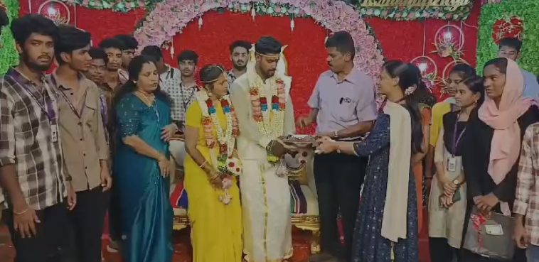 மதுரை தெப்பக்குளம் பகுதியில் உள்ள திருமண மண்டபத்தில் அமெரிக்கன் கல்லூரியில் பயிலக்கூடிய கல்லூரி மாணவி மது பிரியா, ராம்குமார் திருமணம் நடைபெற்றது