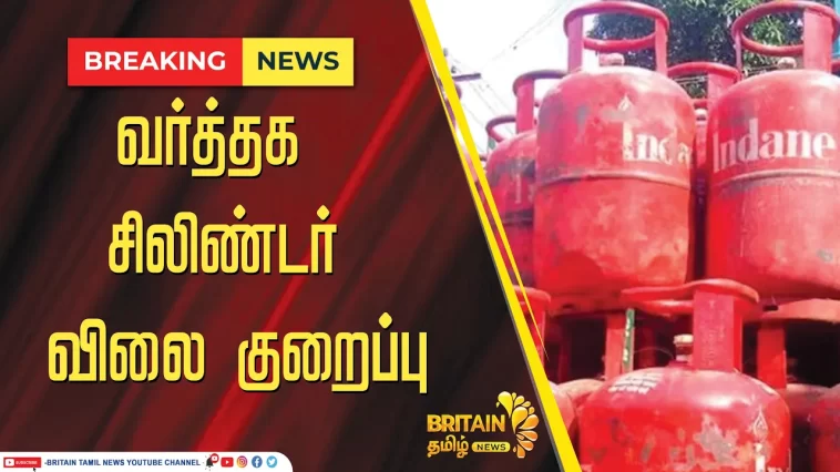 வர்த்தக பயன்பாட்டுக்கான சமையல் எரிவாயு சிலிண்டர் விலை குறைந்துள்ளது.