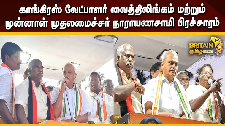 காங்கிரஸ் வேட்பாளர் வைத்திலிங்கம் மற்றும் முன்னாள் முதலமைச்சர் நாராயணசாமி பிரச்சாரம்