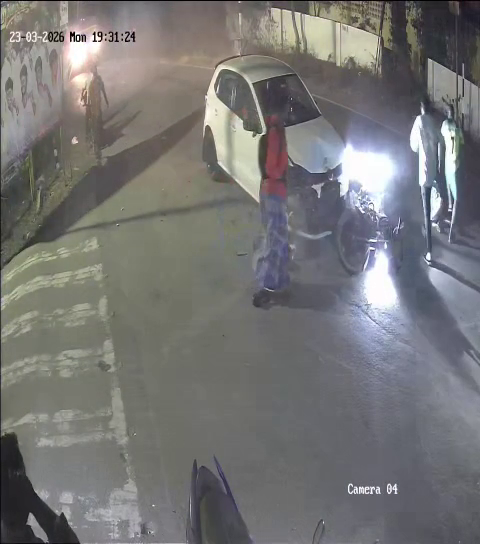 சாலை ஆக்கிரமிப்பால் குருகலான சாலையில் அதிவேகமாக வந்த கார் மோதி தூக்கி வீசப்பட்டவர்,கால் முறிவு மற்றும் தலையில் பலத்த காயம், உயிருக்கு ஆபத்தான நிலை, சிசிடிவி காட்சி வெளியாகி பரபரப்பு