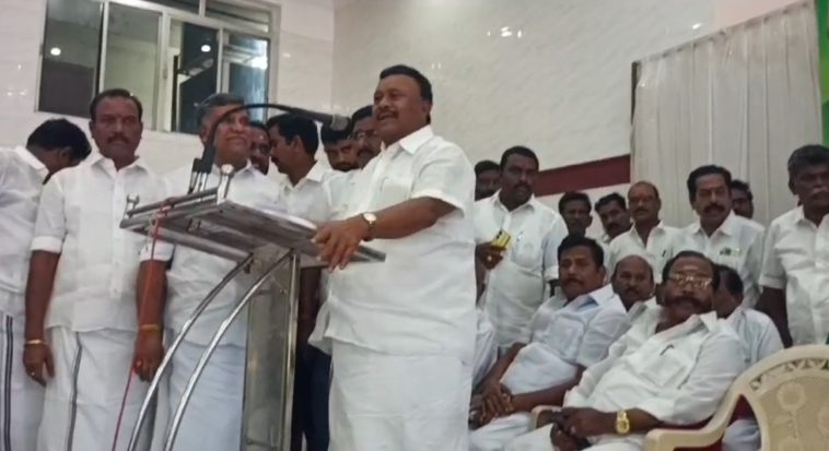கும்பகோணம் அதிமுக ஆலோசனை கூட்டத்தில் திண்டுக்கல் சீனிவாசன் மேடையில் பேசுவதற்குள் சர்ச்சை