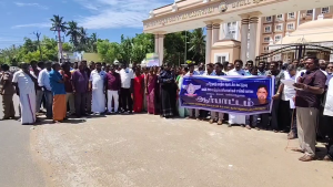 தமிழக அரசின் நியாய விலை கடைகளில் ப்ளூடூத் மூலம் விற்பனை செய்யும் முறையை ரத்து செய்ய வேண்டும் என் மனம் உள்ளிட்ட 8 அம்ச கோரிக்கைகளை வலியுறுத்தி கூட்டுறவு சங்க பணியாளர்கள் கண்டன ஆர்ப்பாட்டம் நூற்றுக்கணக்கானோர் பங்கேற்பு.
