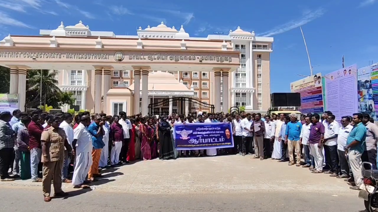 இந்த முறையில் நடைமுறை சிக்கல்கள் அதிகம் இருப்பதால் தொழிலாளர்கள் மிகவும் பாதிக்கப்படுகின்றனர், இந்த முறையை ரத்து செய்ய வலியுறுத்தியும், ஆள் பற்றாக்குறையை நீக்க வலியுறுத்தியும், பொருட்களை பிளாஸ்டிக் பைகளில் அடைத்து விற்பனை செய்ய வலியுறுத்தல் உள்ளிட்ட 8 அம்ச கோரிக்கைகளை வலியுறுத்தி மயிலாடுதுறை மாவட்ட ஆட்சியர் அலுவலகம் முன்பு தமிழ்நாடு மாநில தொடக்க கூட்டுறவு வங்கி அனைத்து பணியாளர் சங்கம் சார்பில் கண்டன ஆர்ப்பாட்டம் நடைபெற்றது.