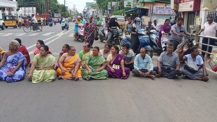 தஞ்சாவூர் மாநகராட்சி நிர்வாகத்தை கண்டித்து 30 மற்றும் 31 வார்டு மாமன்ற உறுப்பினர்கள் சாலை மறியல் போராட்டம்.