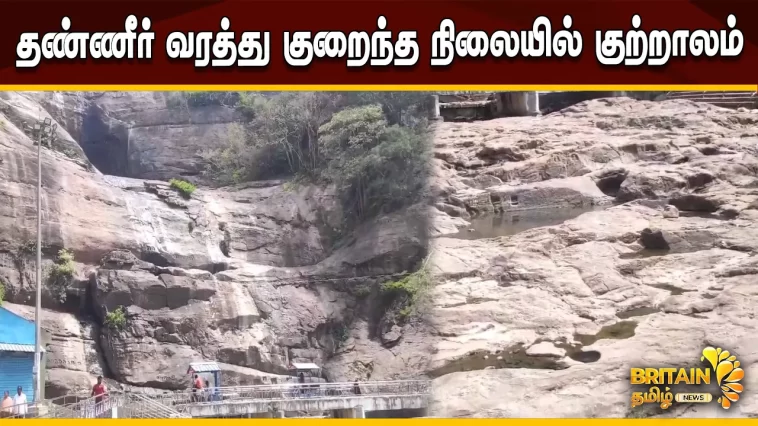 தென்காசி மாவட்டத்தில் கோடை வெயில் சுட்டெரிக்கும் நிலையில் குற்றால அருவிகள் பாறைகளாக காட்சியளிப்பதுடன், பெயரளவிற்கு வழியும் தண்ணீரில் சுற்றுலா பயணிகள் தலையை நனைத்த வண்ணம் செல்கின்றனர்