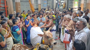 இதில் திரளான பக்தர்கள் கலந்து கொண்டு பசுவிற்கு சிறப்பு பூஜை செய்து வழிபட்டனர்.