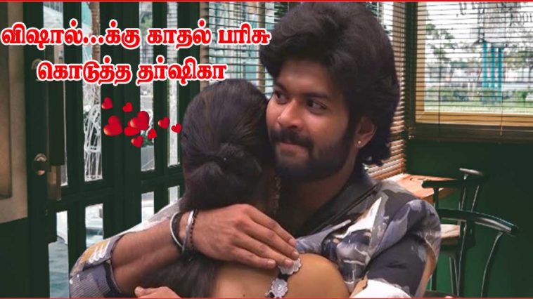 லவ் Content கொடுத்ததும் தர்ஷிகா…வை மக்கள் நிராகரித்து விட்டனர். பிக்க் பாஸ் வீட்டை விட்டு வெளியேருவதிற்கு முன்பு விஷாலை கட்டி அணைத்து தன் அம்மாவின் மோதிரத்தை காதல் பரிசாக கொடுத்து, டைட்டில் ..லுடன் வெளியே வர வேண்டும் என்று அன்பு கட்டளை இட்டார்.
