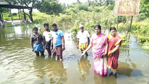 இந்நிலையில் நேற்று இரவு பெய்த தொடர் கனமழையின் காரணமாக அத்திகுளம் தெய்வேந்திரி சோழங்குளம் கண்ம்மாய் பெருகி நீர் வெளியேறி அருந்ததியர் காலனியை ஒட்டியுள்ள நீரோடை பகுதிகளில் நீர்வரத்து அதிகமாக வந்து கொண்டிருப்பதால் அத்தியாவசிய பொருட்களை வாங்க அருந்ததியர் காலனி மக்கள் நகர் பகுதிக்கு செல்ல முடியவில்லை எனவும் பள்ளிக்குச் செல்லும் மாணவர்கள் பொதுமக்கள் சிரமப்பட்டு ஆபத்தான முறையில் கரையை கடந்து செல்வதாகவும், சாக்கடை நீருடன் கண்மாய் நீரும் கலந்து சாலைகளில் செல்வதால் நோய் தொற்று பரவும் அபாயம் ஏற்பட்டுள்ளதாகவும் இது குறித்து பலமுறை முதலமைச்சர் தனி பிரிவிற்கு மனு அளித்தும், அரசு அதிகாரிகளின் கவனத்திற்கு கொண்டு சென்றும் நடவடிக்கை எடுக்கப்படவில்லை என அப்பகுதியில் வசிக்கும் மக்கள் குற்றம் சாட்டுகின்றனர்.
