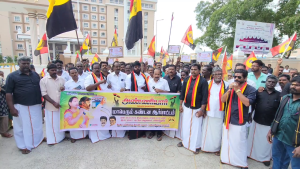 தமிழகத்தில் பொங்கல் திருநாளில் குடும்ப அட்டைகளுக்கு ஆயிரம் ரூபாய் வழங்காததை கண்டித்தும் தமிழகத்தில் பாலியல் வன்கொடுமை சீர்கேடுகளை கண்டித்தும் போதை மற்றும் கஞ்சா பழக்கத்தை தடுக்காததை கண்டித்தும் ஆர்ப்பாட்டம் நடைபெற்றது.