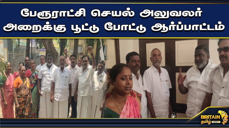 பேரூராட்சி செயல் அலுவலர் அறைக்கு பூட்டு போட்டு பேரூராட்சி தலைவர் மற்றும் துணைத் தலைவர் உள்ளிட்டோர் ஆர்ப்பாட்டம்.