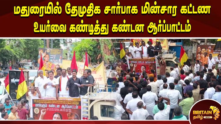 மதுரையில் தேமுதிக ஒருங்கிணைந்த மாவட்டம் சார்பாக மின்சார கட்டண உயர்வை கண்டித்து மாபெரும் கண்டன ஆர்ப்பாட்டம் நடைபெற்றது