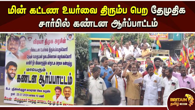 விருதுநகர் மாவட்டம் ஸ்ரீவில்லிபுத்தூரில் மின் கட்டண உயர்வை திரும்ப பெற வலியுறுத்தி தேமுதிக சார்பில் மாவட்ட செயலாளர் தலைமையில் கண்டன ஆர்ப்பாட்டம் ஏராளமானோர் பங்கேற்பு