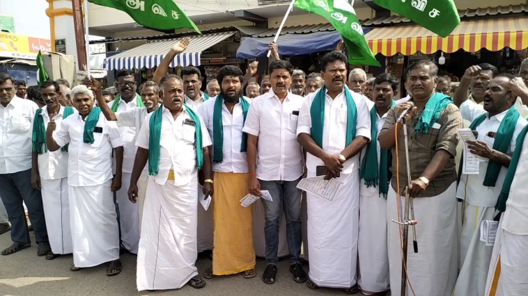 காரியாபட்டி பேருந்து நிலையம் முன்பு தமிழக அரசைக் கண்டித்து காவிரி வைகை கிருதுமால் குண்டாறு விவசாயிகள் கூட்டமைப்பு சார்பில் கண்டன ஆர்ப்பாட்டம்