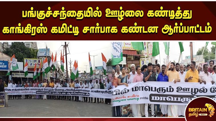 பங்குச்சந்தையில் 38 இலட்சம் கோடி ரூபாய் ஊழல் நடைபெற்று இருப்பதாக பிரதமர் மோடி மற்றும் அமித்ஷாவை கண்டித்து திண்டுக்கல் மாவட்ட காங்கிரஸ் கமிட்டி சார்பாக மணிக்கூண்டு பகுதியில் மாபெரும் கண்டன ஆர்ப்பாட்டம் நடைபெற்றது.
