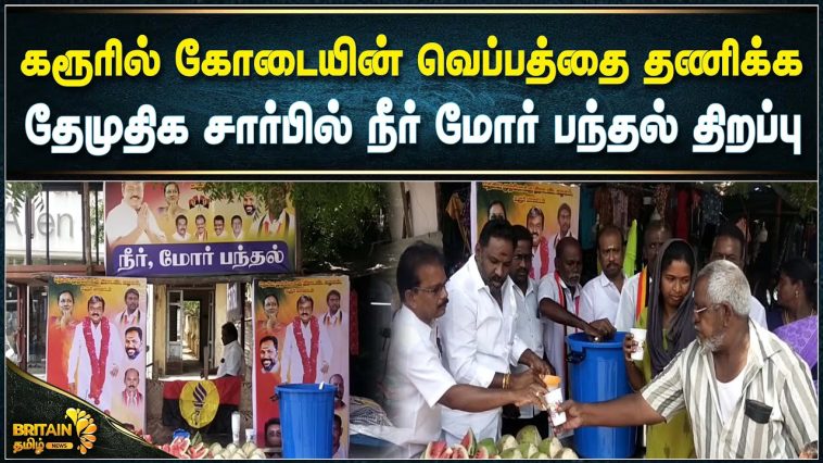 இதன் அடிப்படையில், கரூர் தாலுக்கா அலுவலகம் முன்பு, தேமுதிக கட்சியின் மாநகர மாவட்ட செயலாளர் அரவை முத்து தலைமையில் நீர் மோர் பந்தல் திறப்பு விழா நடைபெற்றது.