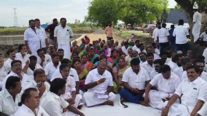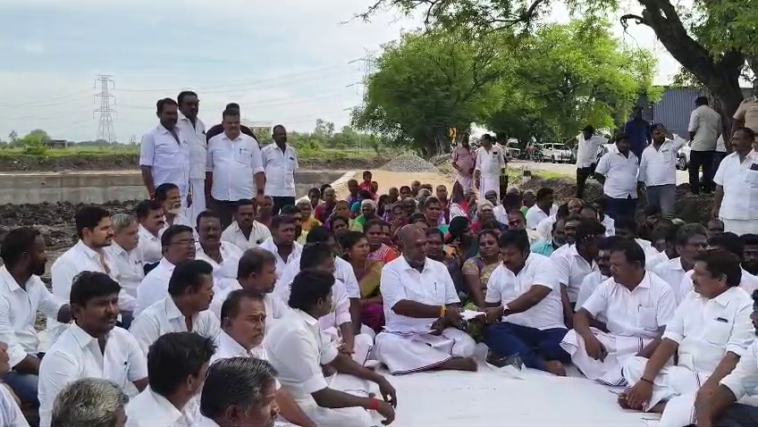 மக்களோடு மக்களாக சேர்ந்து சட்டமன்ற எதிர்க்கட்சி துணைத் தலைவர் ஆர். பி உதயகுமார் தரையில் அமர்ந்து கவன ஈர்ப்பு தர்ணா போராட்டம்.