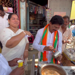 பொது மக்களுக்கு டீ போட்டுக் கொடுத்து தாமரை சின்னத்திற்கு வாக்கு சேகரித்த பாஜக வேட்பாளர்