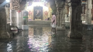 விருதுநகர் மாவட்டம் ஸ்ரீவில்லிபுத்தூரில் 1000 ஆண்டுகளுக்கு மேல் பழமை வாய்ந்த மடவார் வளாகம் வைத்தியநாத சுவாமி திருக்கோவில் உள்ளது. இக்கோவிலில் நேற்று இரவு வேலையில் பெய்த கனமழை காரணமாக உட்பகுதியில் மழைநீர் சூழ்ந்து காணப்படுகிறது.