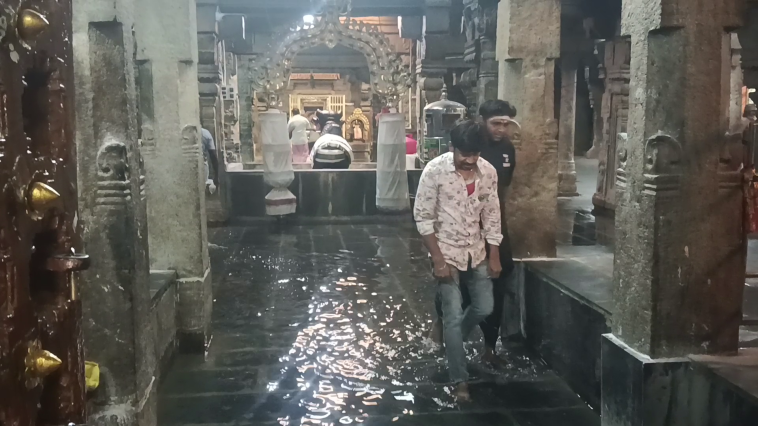மழை நீரில் சென்று சாமி தரிசனம் செய்யும் அவல நிலை ஏற்பட்டுள்ளது. மழைக்காலங்களில் இதே நிலை நீடித்து வருவதாகவும் இந்து அறநிலையத்துறை மற்றும் கோவில் நிர்வாகம் கண்டு கொள்வது இல்லை எனவும் குற்றம் சாட்டுகின்றனர்.