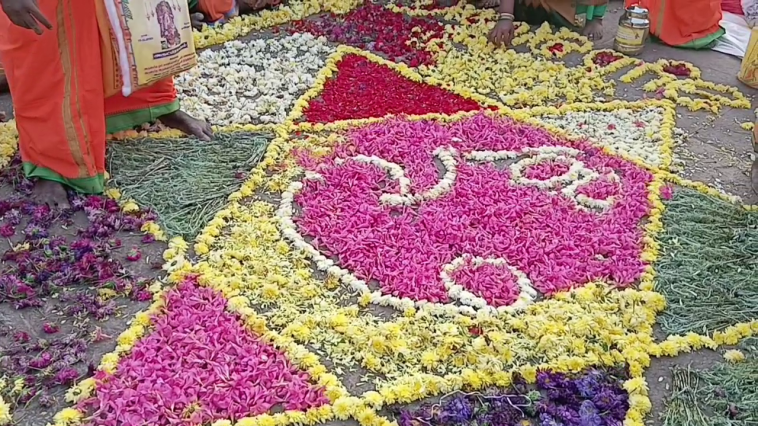மலைக் கோயிலுக்கு செல்லும் படிப்பாதையில் கோலம் வரைந்து தேங்காய், பழம், பொங்கல் வைத்து முருகனைப் போற்றி பாடல்களை பாடி படி பூஜை செய்து வழிபட்டனர். தொடர்ந்து மலைமீது வெளிபிரகாரத்தில் பிச்சிபூ , சம்மங்கி, மரிகொழுந்து, வாடாமல்லி உள்ளிட்ட பல்வேறு வண்ண மலர்களைக் கொண்டு ஓம் வடிவில் வரைந்து மலர் வழிபாடும் செய்தனர்.