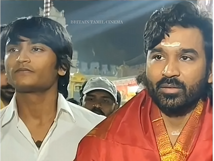 அவரோட பசங்களும் அதே மாதிரி பாரம்பரிய உடையில் இருந்தாங்க. தனுஷ் வந்த விஷயம் தெரிஞ்சதும் அங்கிருந்த ரசிகர்கள் அவரைப் பார்க்கவும், போட்டோ எடுக்கவும் ஆர்வம் காட்டினாங்க.